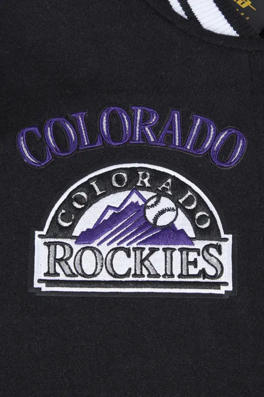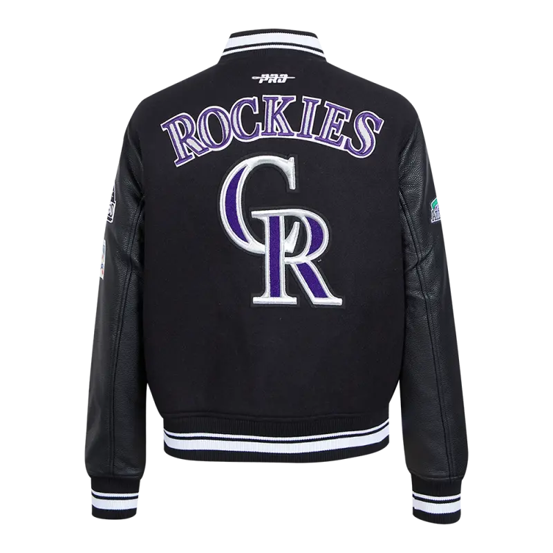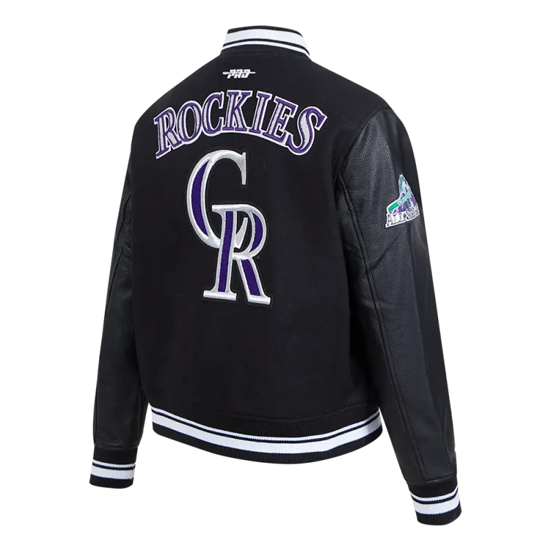 MLB COLORADO ROCKIES RETRO CLASSIC WOMEN’S RIB WOOL VARSITY JACKET (BLACK)
