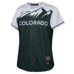 • Get your youngster a truly unique piece for their Colorado Rockies collection of gear with this Kris Bryant City Connect Replica Player jersey. This special Nike piece is perfect for them whether born and raised in the high west or having gravitated towards the bold adventures that Colorado and its beautiful mountain ranges provide. The vibrant colors for this gear are inspired by and reflect the deep mountain evergreens and purple-hued skies that encompass Colorado. With intricate City Connect details that celebrate your little one's growing Colorado pride as well as the historic identity of the Rockies' past, no one will ever wonder where they are from or who they rep when they are sporting this new look.